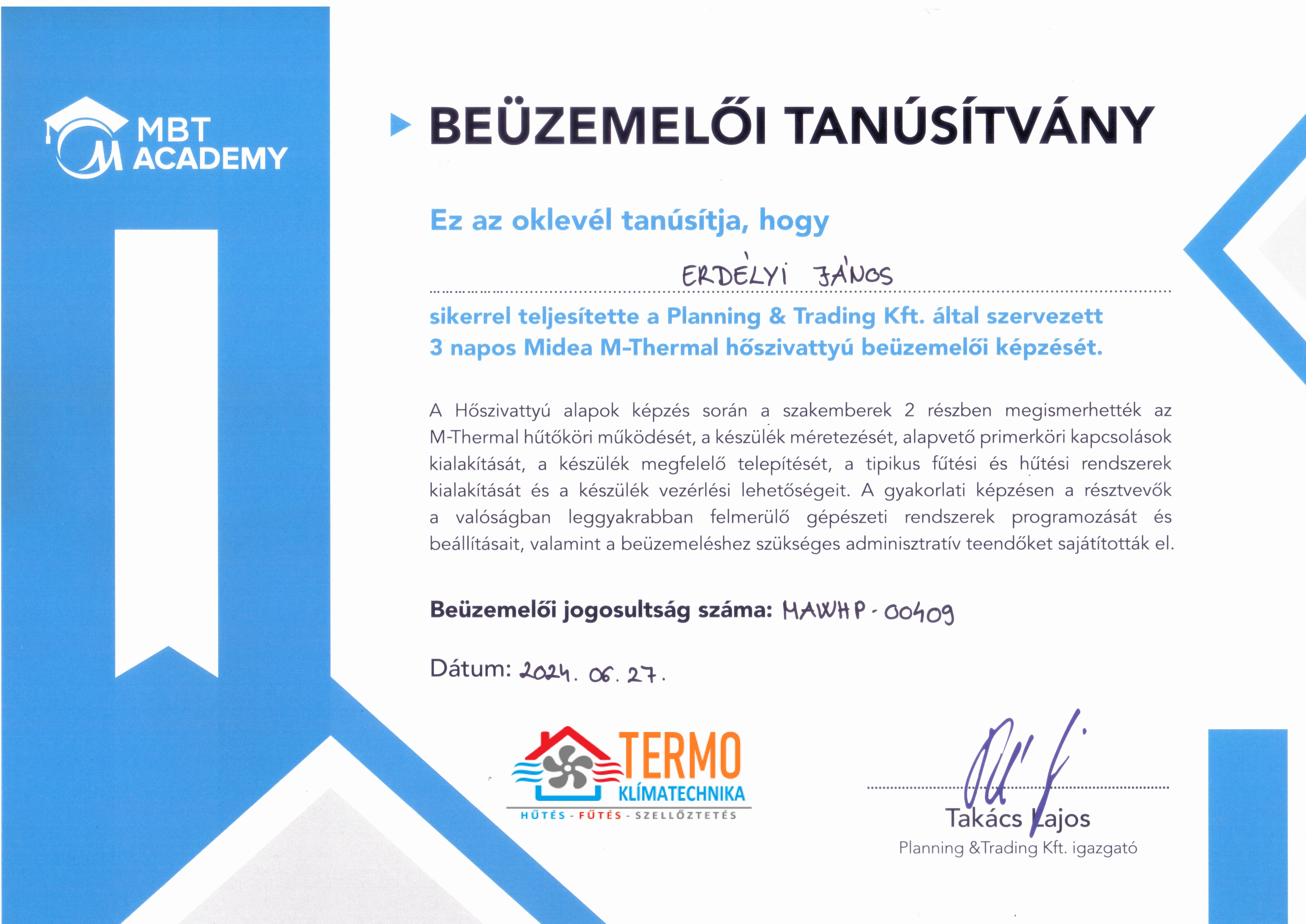 Hivatalos garancia: Minden általunk telepített készülékre teljes körű magyarországi garanciát biztosítunk.